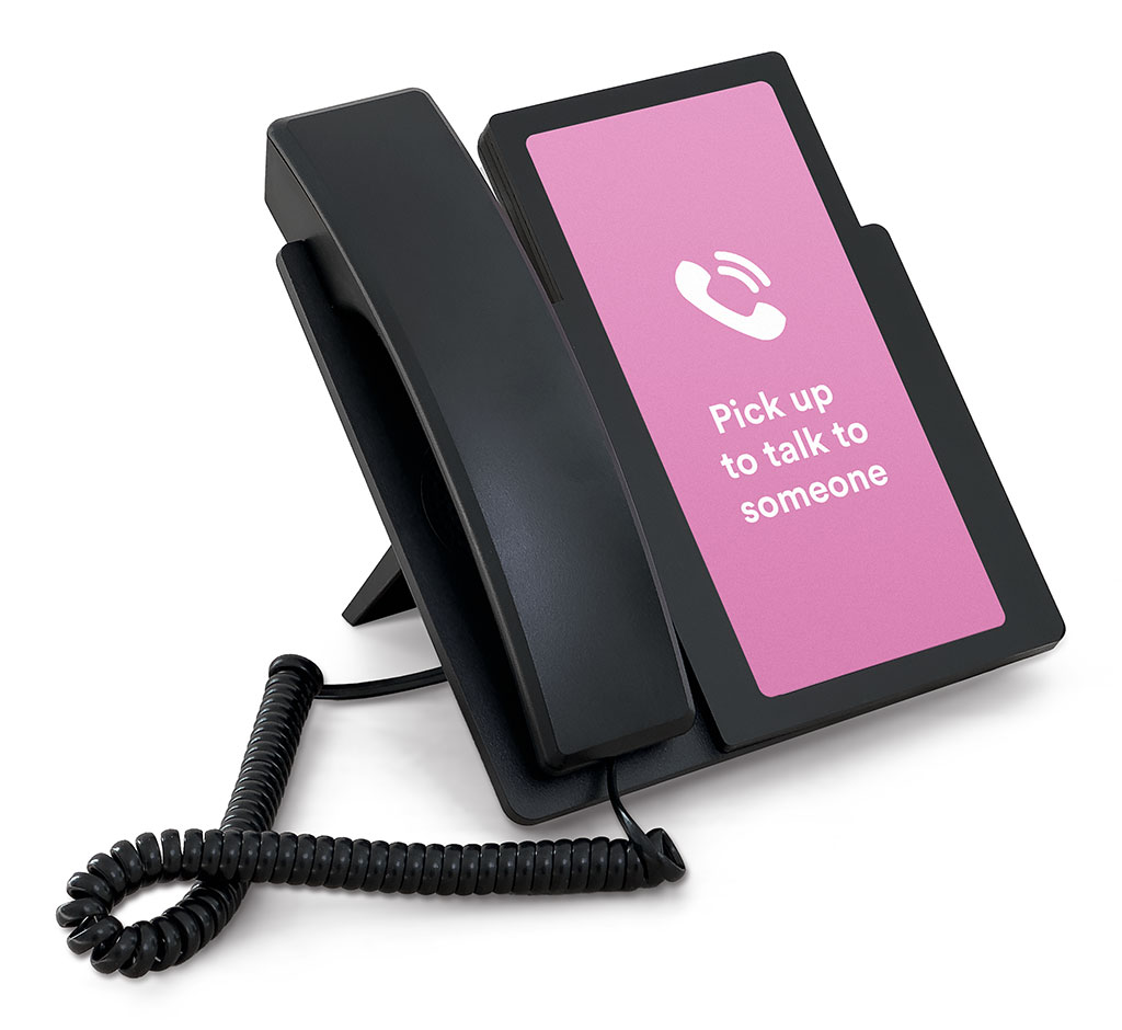 Because the table phone is familiar and simple for most seniors living with cognitive disorders. Pick up and talk.